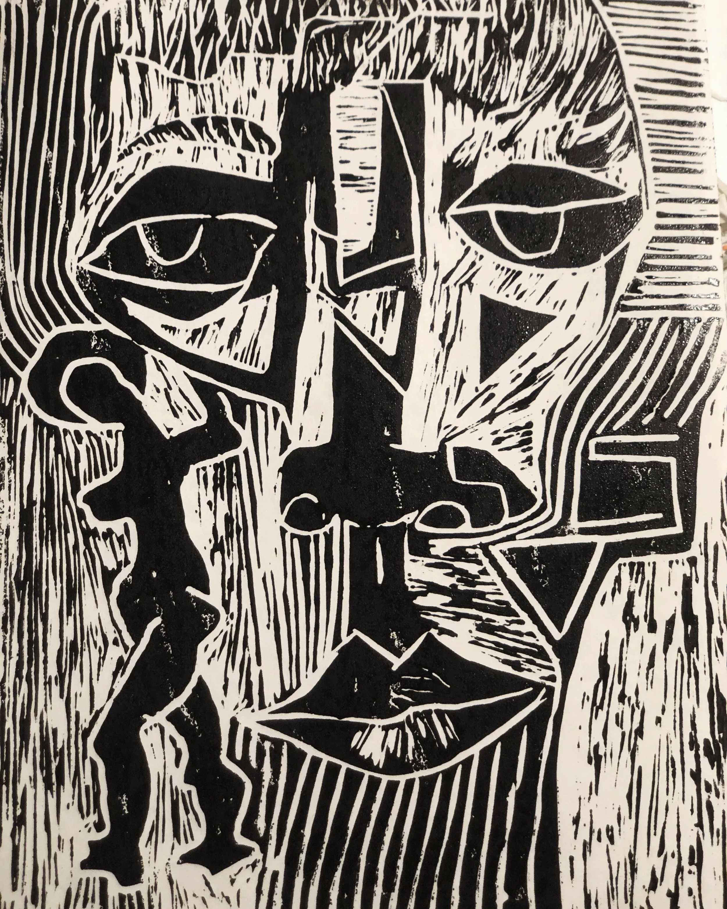 Jupiter is a Mozambican-born artist based in Denmark whose work is deeply rooted in Makonde heritage and the wider traditions of the Black Arts Movement. Drawing inspiration from the chisel craft of Makonde sculptors and historic African masks, Jupiter’s linoleum prints are carved with precision and imbued with layered narratives. This practice reimagines traditional forms, making them newly accessible through a contemporary lens."